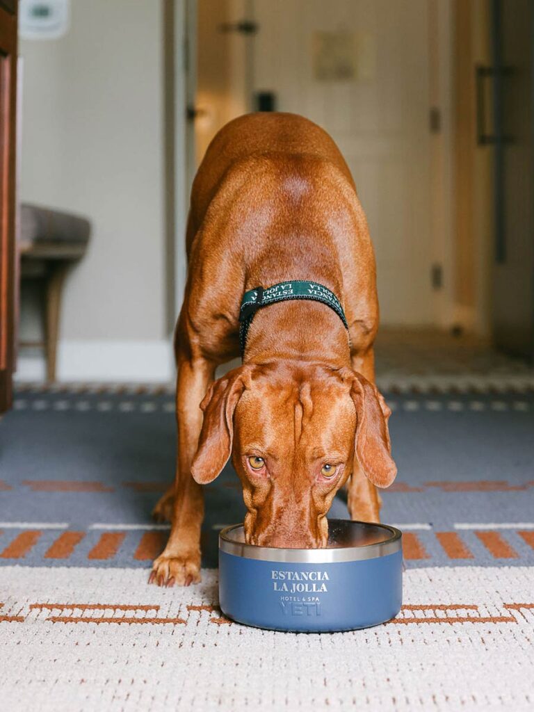 Estancia La Jolla Hotel & Spa’s pet-friendly travel program offers a creative selection of add-ons, including a special package featuring locally made grain-free Mutt Munchers peanut-butter treats from Muttropolis and a comfy dog bed.