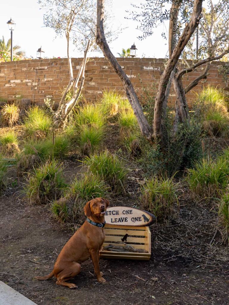 At Estancia La Jolla, we invite you to bring your furry family member along for the vacation — no matter their size, weight, or breed. Our San Diego pet-friendly hotel offers a variety of pet amenities, packages, and grassy retreats. All guests bringing pets will be subject to a non-refundable $200 pet fee taken at registration.